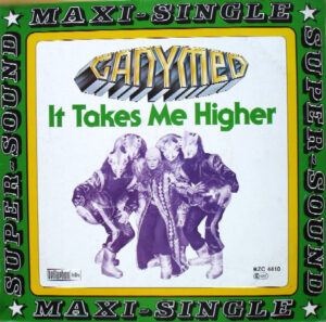 А вот и Ganymed – отвратительные болторылые ублюдки, похитители блондинок из дальнего космоса! Немецкий 12″ сингл “It Takes Me Higher / Hyperspace” 1978го, BZC 4410, VG+/VG, 600 р.